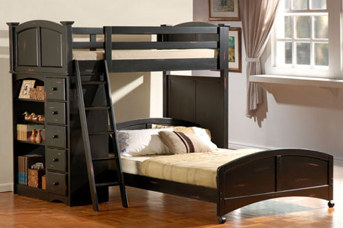 TWIN/FULL LOFT BED W/ SHELF AND 5 DRAWER STORAGE